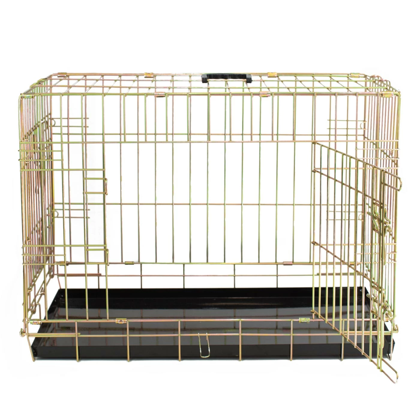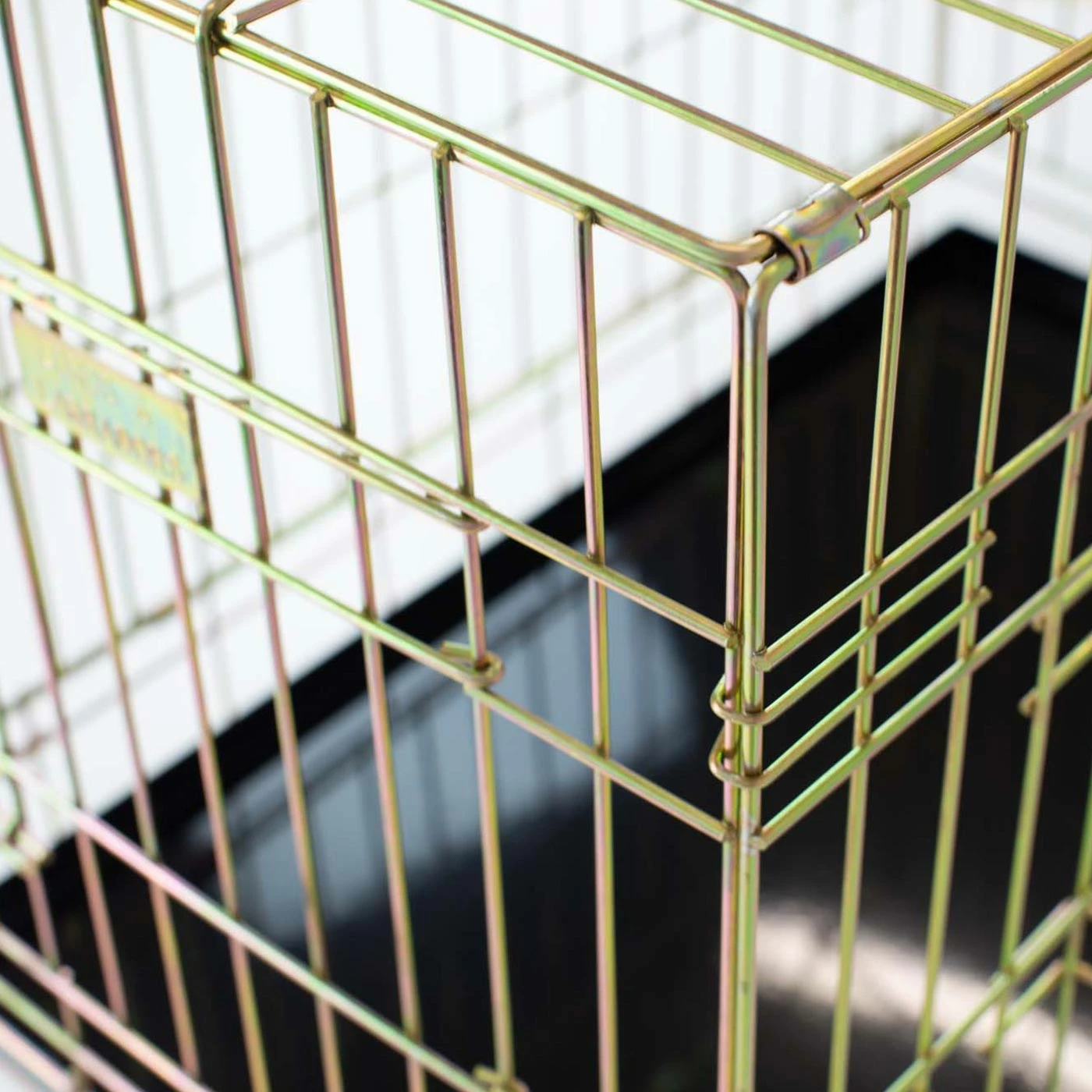 This crate is perfect for my dog. The size is just right, and the gold finish is stunning. It’s also very easy to clean and maintain.