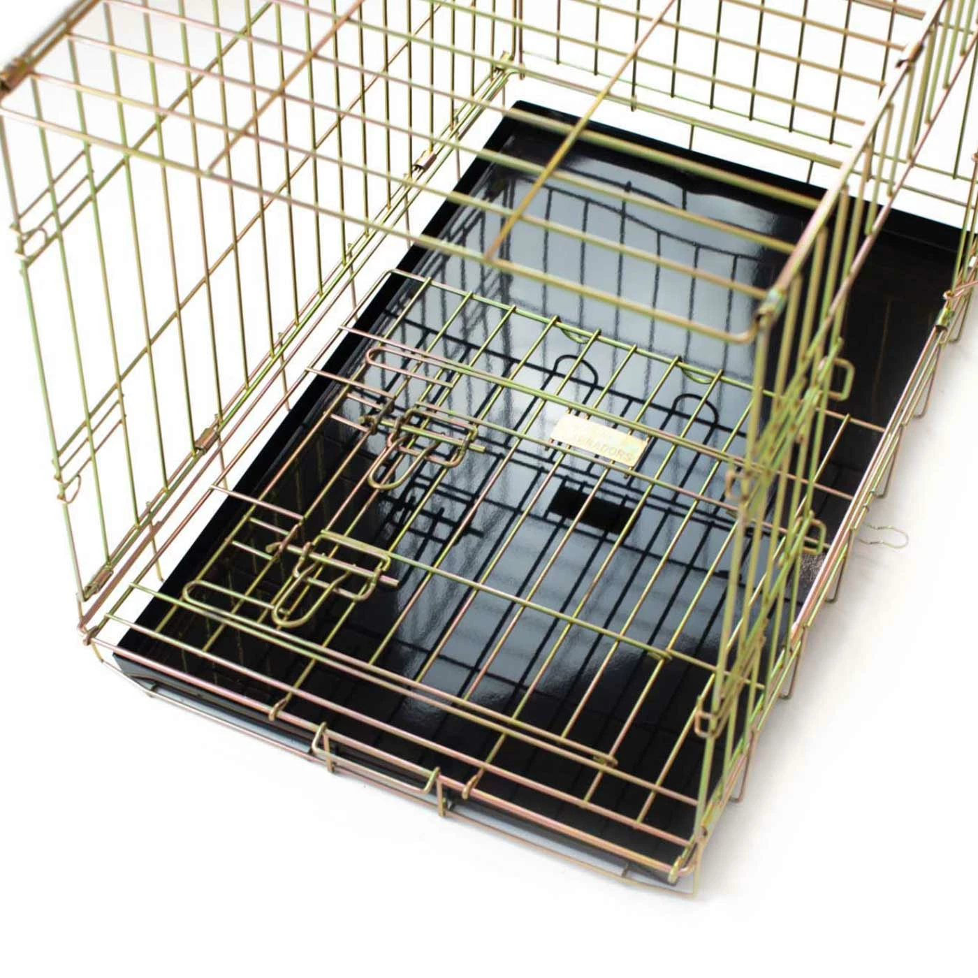โข There is a blackย metal floor tray that is easily removable for cleaning, great for puppies that love to chew!
