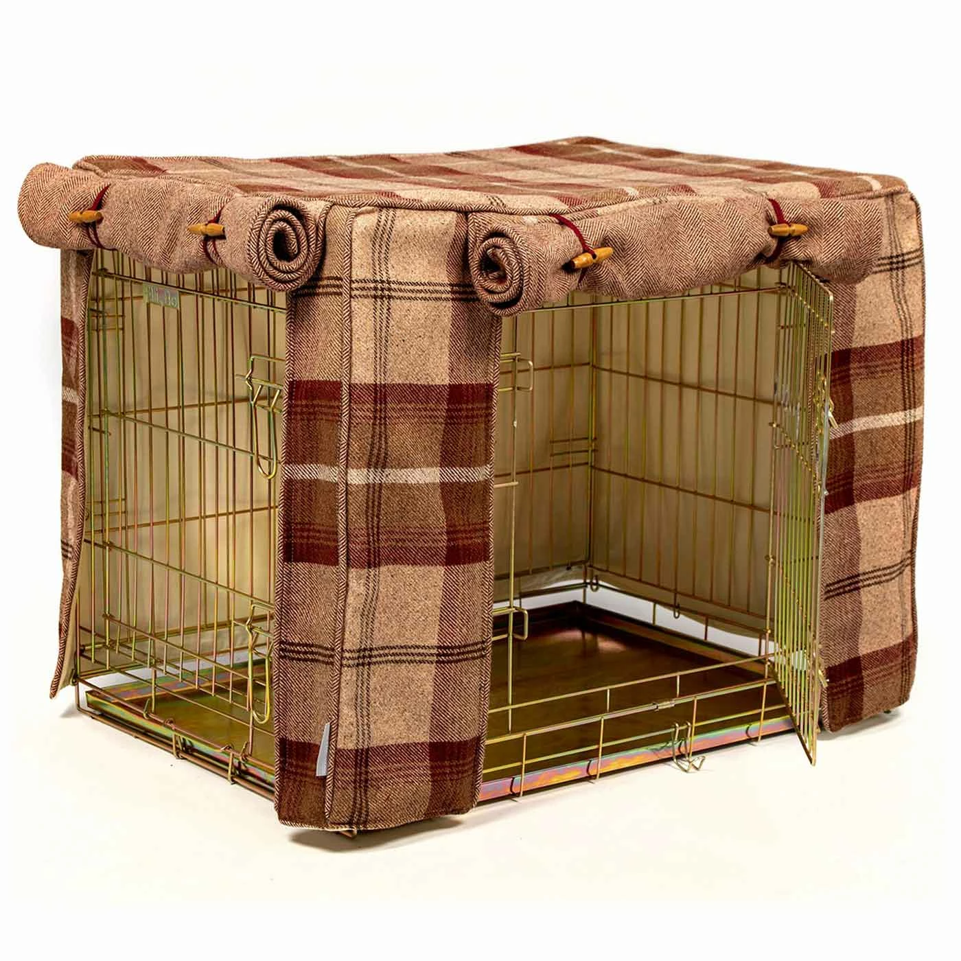 • Fully lined tweed dog crate cover with roll up doors