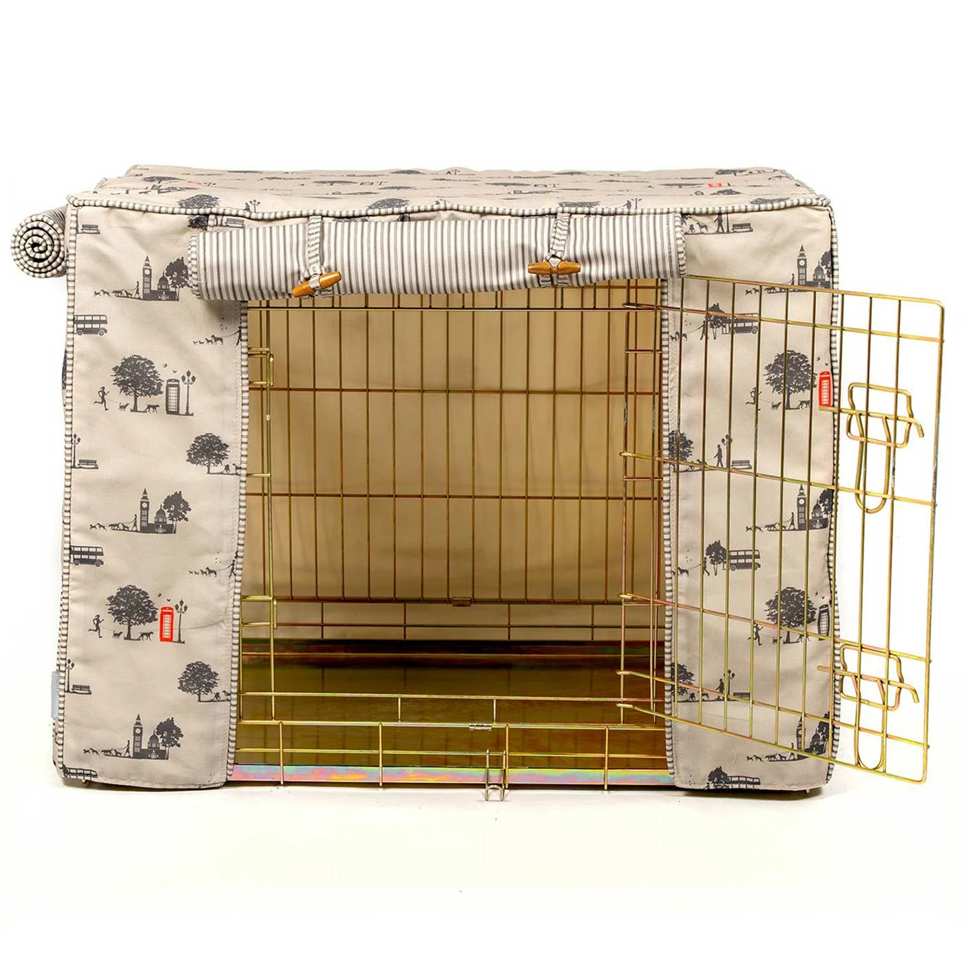 โขย Fully lined cotton dog crate cover with roll up doors