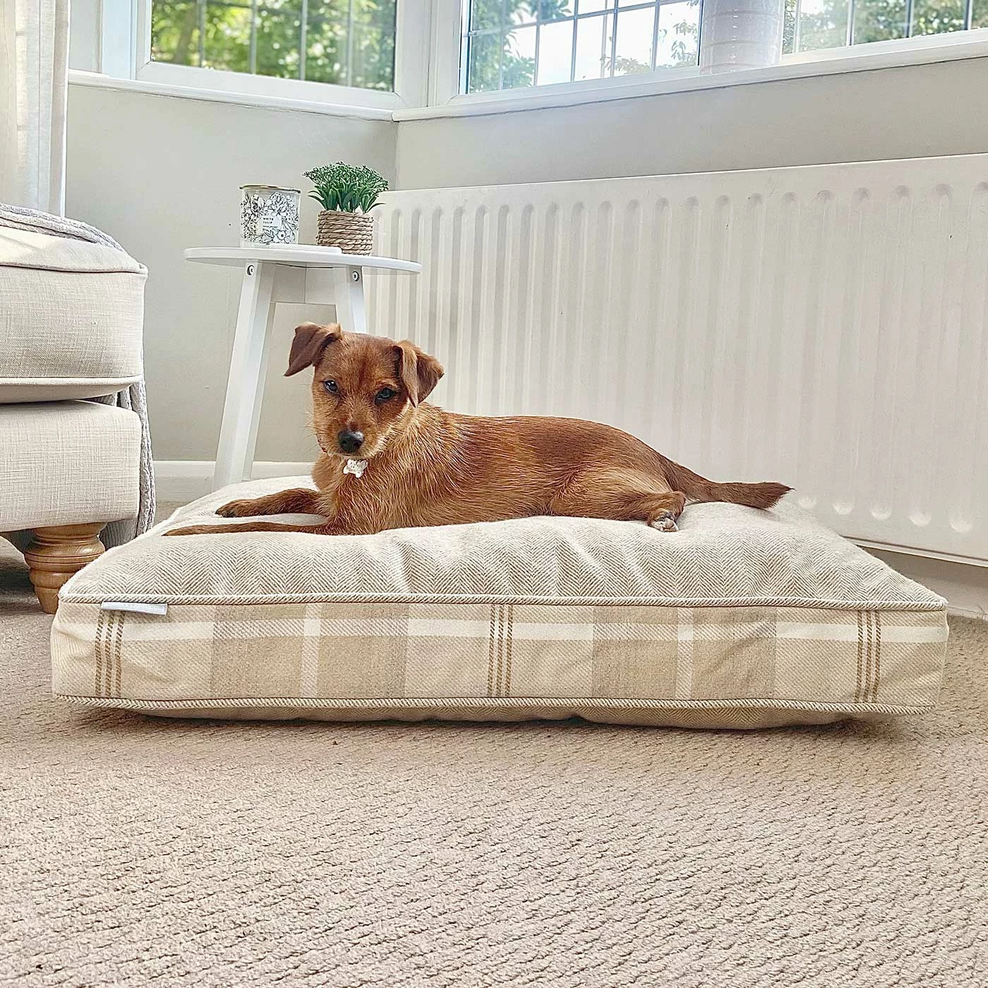 โข Super plump and cosy tweed dog cushion
