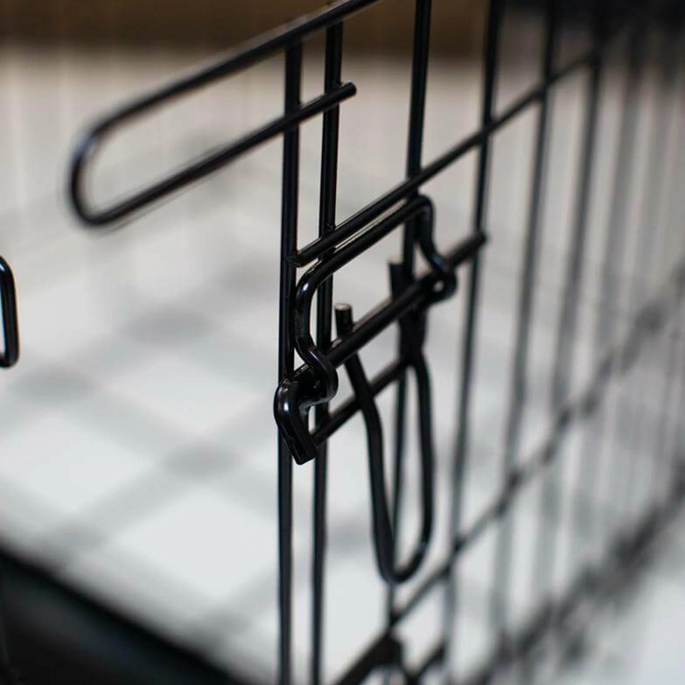 โข There is a blackย metal floor tray that is easily removable for cleaning, great for puppies that love to chew!