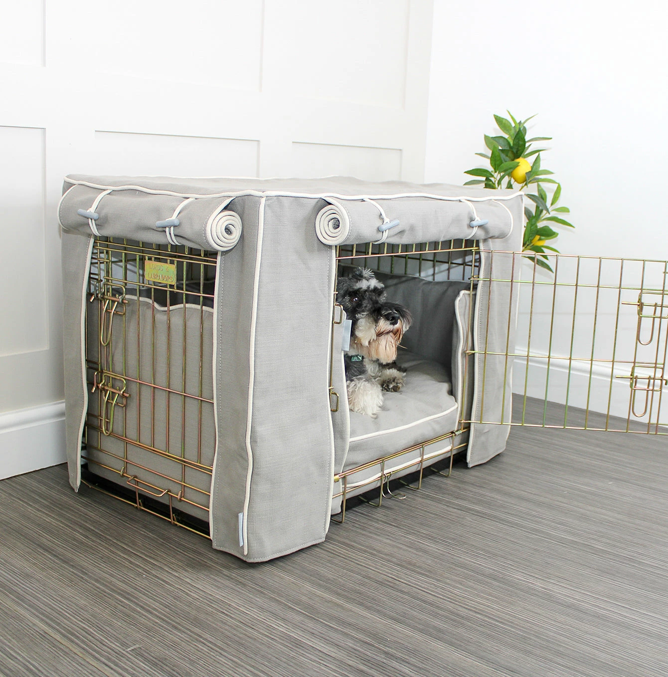 โข Cotton dog crate cover with roll up doors